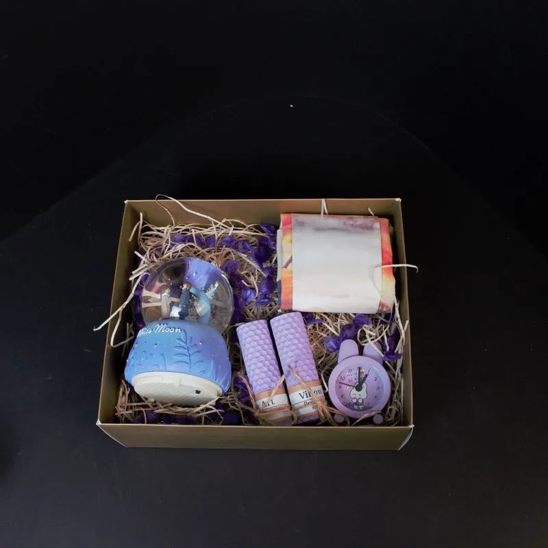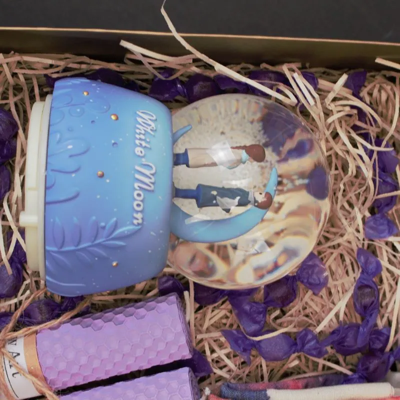 گوی برفی موزیکال بزرگ/2 عدد شمع لونه زنبوری/مینی ساعت/توت بگ شازده کوچولو/50gشکلات آبنباتی میباشد.